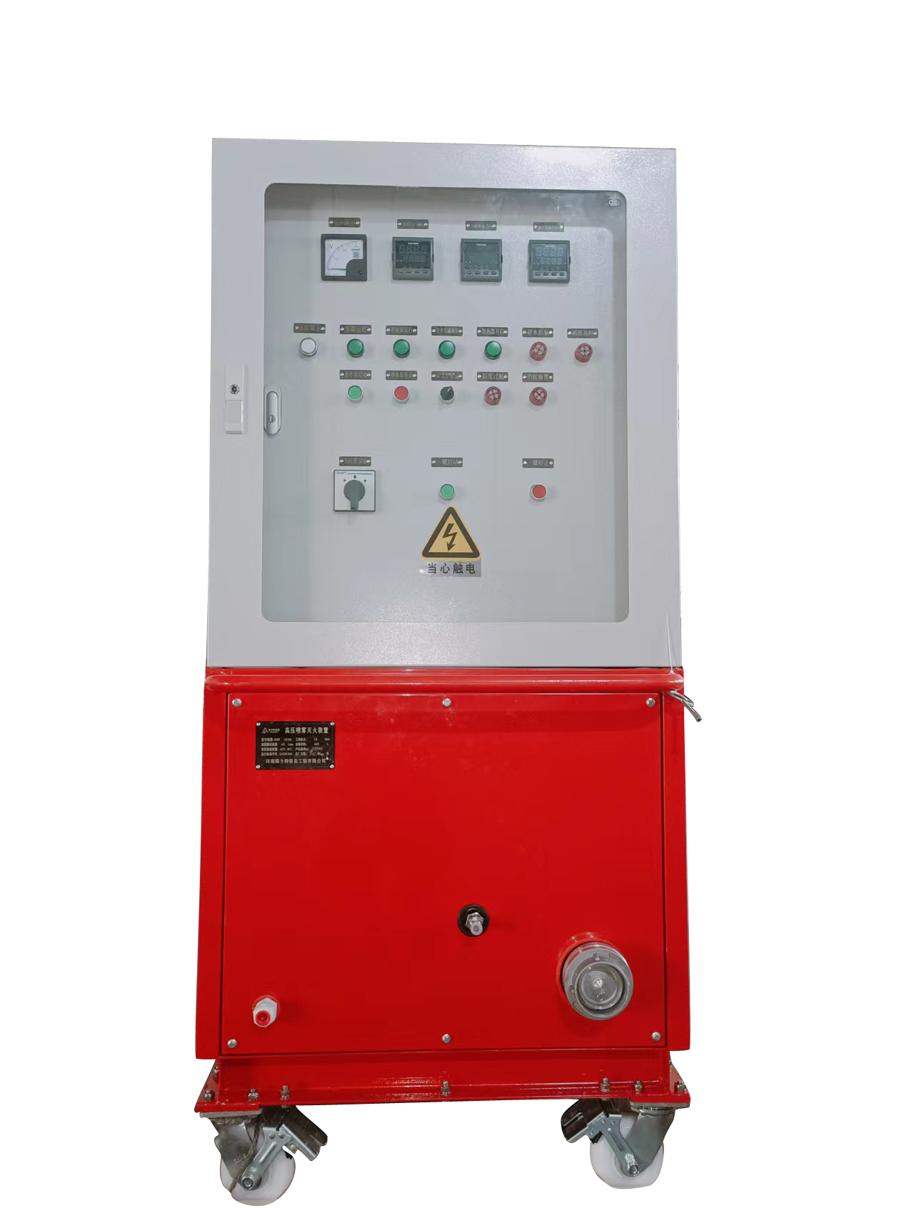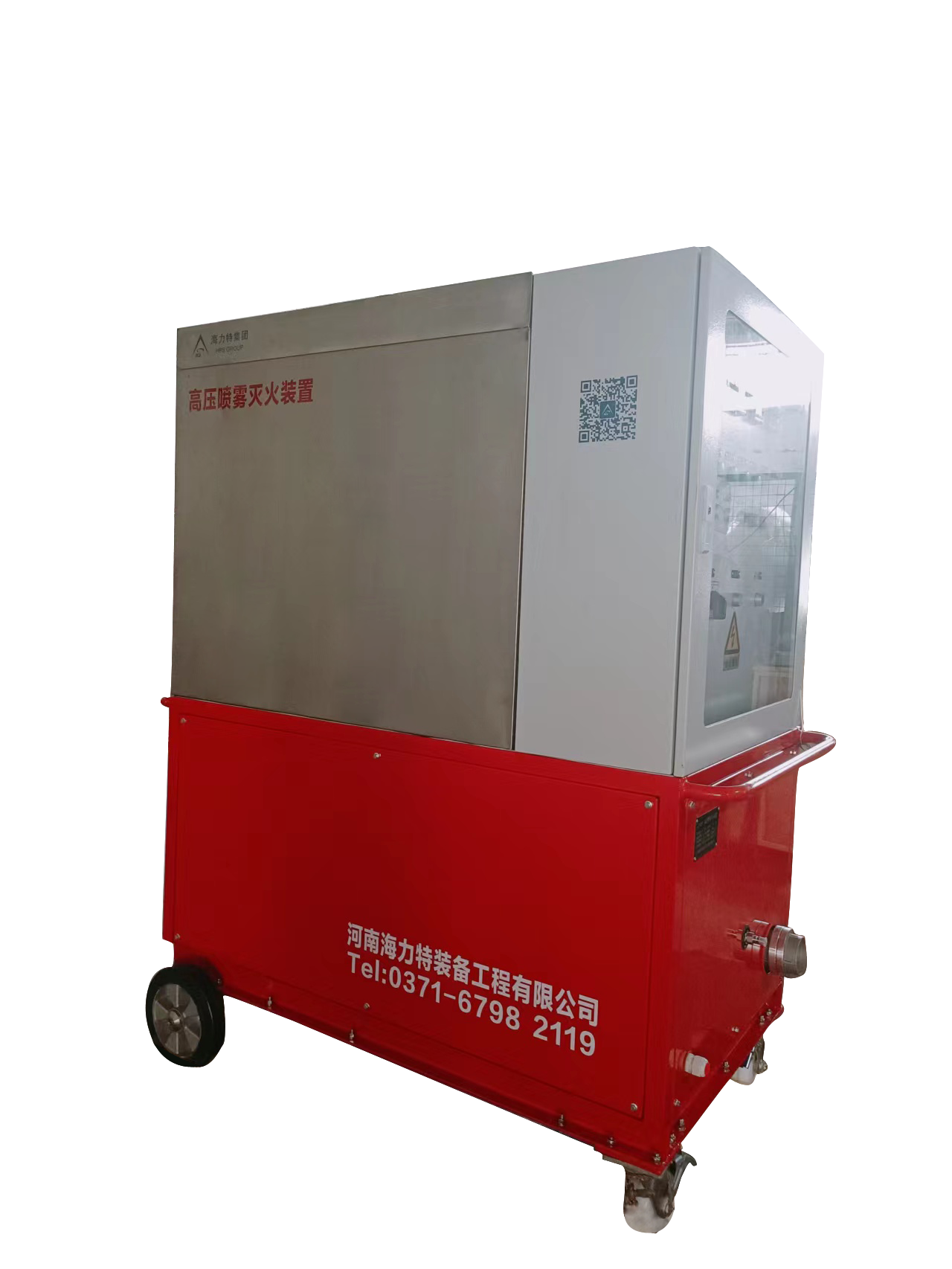 The high pressure spray fire extinguishing device consists of double stainless steel water tank, three-phase motor, high pressure pump, reel, high pressure hose, combination nozzle, heat preservation device, control box and so on.