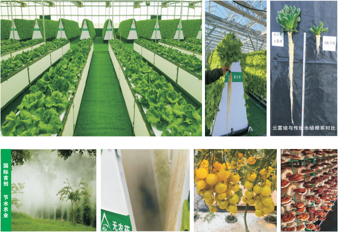 云雾培技术不受土地限制,节地节水,只要有阳光的地方均可实现高效种植,也可应用在传统农业无法种植的地方,如海岛、荒地、沙漠、戈壁滩、盐碱地区、高寒地区等;更可为乡村振兴、现代农业产业园、农业观光、种子培育等领域提供核心技术支撑。