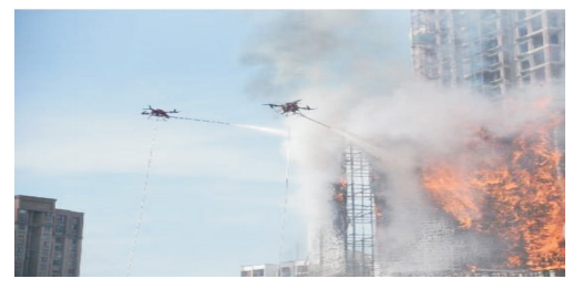 细水雾灭火装置整体安装在无人机上,相对于分布式,其响应更及时、操作性能更方便,可在收到火灾报警信号后第一时间直接起飞,到达火灾现场并进行喷雾灭火,无需现场连接主机、喷枪及高压软管等,可实现自动或遥控喷雾灭火。