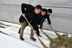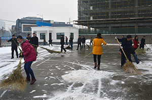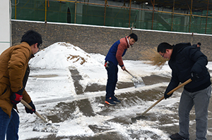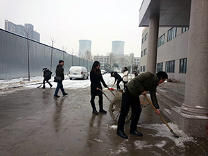 瑞雪兆丰年,2015年的第一场雪带着春的气息飘然而至,海力特园区银装素裹,成为童话般的世界。园区地面的积雪厚厚一层,为保障大家出行安全,清晨一上班大家便纷纷挥舞着铁锹、扫帚投入到扫雪的战斗中。