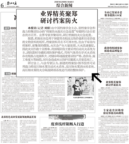 本报讯(记者 刘招)由中国档案学会主办、省档案学会和海力特集团协办的“档案防火救灾应急处置”专题研讨会日前在我市召开。业界专家齐聚郑州,研讨档案防火应急处置。