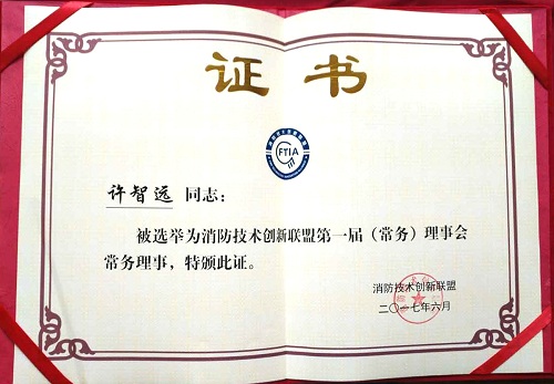 海力特集团董事长许智远同志被选举为消防技术创新联盟第一届(常务)理事会常务理事。