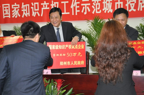 郑州市知识产权工作示范城市授牌暨实施知识产权战略工作会议于2010423召开,海力特公司作为国家知识产权试点单位参加了此次会议,并受到了表彰。国家知识产权局副局长甘绍宁,市长赵建才,副市长孙金献,市政协副主席朱专兴,市长助理、市政府秘书长张学军出席授牌仪式及随后召开的郑州市实施知识产权战略工作会议。