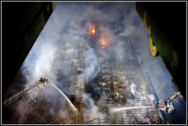 着火的大楼有28层,高度尚未有报道,但有消息说,“用90米的云梯车要居高临下压制火势也很吃力”。可见这幢楼房是高层建筑。比如,按照日本的标准,超过60米的建筑就属于超高型了。目前中国各地都在建造高层和超高层建筑,如何应对这些摩天大楼的火灾,理应成为确保城市安全的一个重要课题。