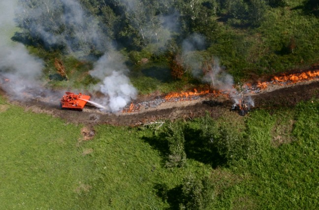 森林火灾给全世界人民的生命和财产带来巨大损失,对生态环境造成严重破坏,给扑救工作造成一系列难题。多年来形成的传统森林火灾扑救模式主要采用灭火炮、灭火弹、风力灭火机和灭火水枪、远程给水、装甲灭火等方式,不仅灭火效率低,用水量大,扑火成本高,而且作战环境差、消防队员危险系数大,已远远不能适应森林灭火的需要。