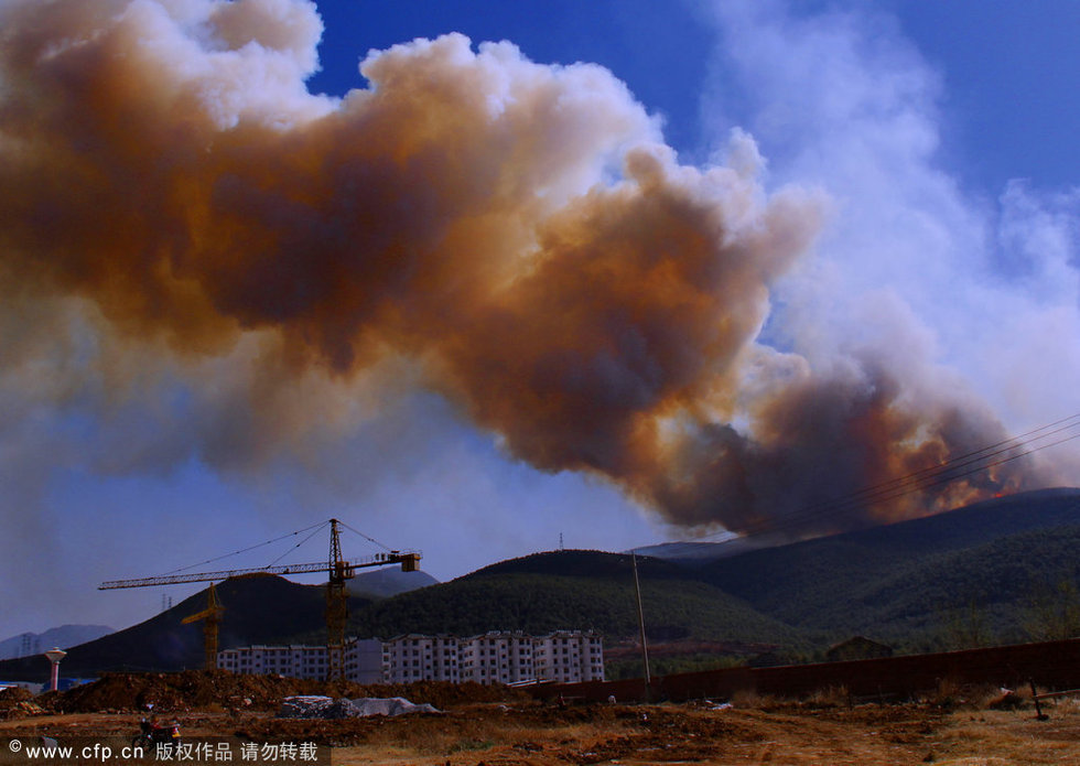 (新华网)2月28日5时左右,云南省丽江市玉龙纳西族自治县黄山镇五台村委会发生森林大火。截至3月1日凌晨1时,火势仍在蔓延,火线达数百米。