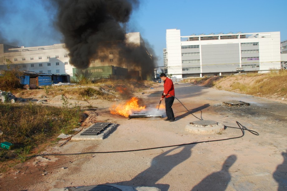 灭火演示内容主要包括扑灭带电电器火灾、天那水火灾、镁粉火灾、木垛火灾、油类火灾等。这些火灾的情况十分复杂,稍有不慎,极易造人员伤亡,消防部队处置起来也十分困难。海力特公司作为国内高压细水雾消防技术的领头军,自主创新的高压细水雾灭火技术是目前国际国内新型的消防技术,可有效解决镁粉、天那水、油类、带电电器类火灾等世界火灾难题。