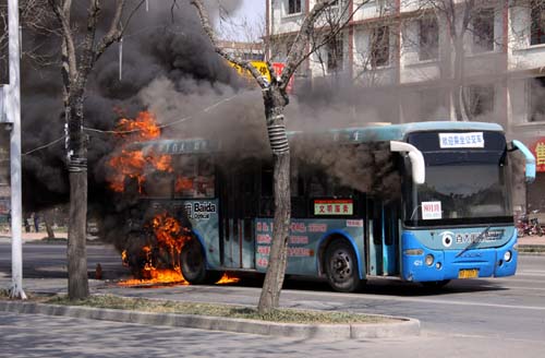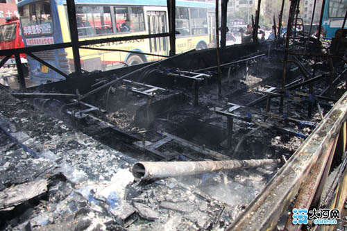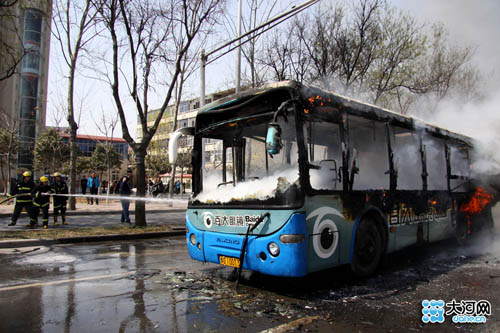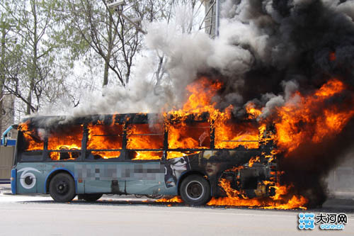 3月28日13时09分,新乡市一辆801路公交车在行驶过程中突然发生自燃,火势十分猛烈,整个车辆被烧毁。车上10余名乘客成功自救,未发生人员伤亡。