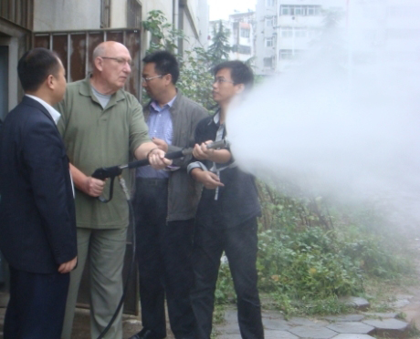 2011年9月28日,瑞典资深消防专家GORAN SKOOG先生在瑞典政府投资促进署官员的陪同下莅临海力特公司进行商务考察,现场观摩了高压细水雾系列消防产品扑灭木柴火、油池火等各种火灾类型的过程演示。亲眼目睹了高压细水雾灭火技术高效节能、安全环保、方便快捷的优异性能,演示现场强大的直观冲击力使得SKOOG先生不断点头满意,“Yes!Very good! Very good!”,并与公司总裁许智远先生关于高压细水雾灭火技术进行了深入的探讨,针对瑞典国内现行使用的国际知名消防产品进行了全方面的技术对比,表示海力特高压细水雾灭火技术无论在灭火效率、灭火时间、耗水量、节能方面都具有明显的优势,已达到国际领先水平,完全达到了联合国绿色节能环保项目中消防产品的采购标准,可以考虑进行推荐引用。