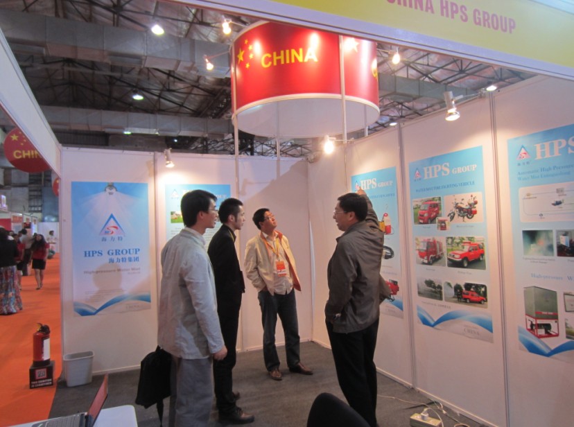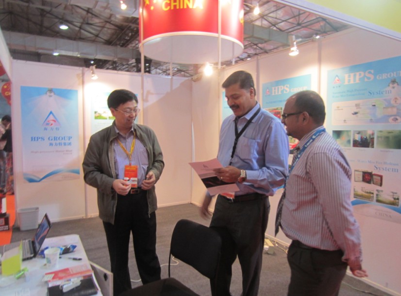 展会上,海力特公司抓住契机全面展示了其自主研发的创新型消防技术——高压细水雾灭火技术High Pressure Water-mist Firefighting Technology,其“高效节能、安全环保”的独特优越性能引起广泛关注,吸引众多的孟买本地企业以及国际目标客户前来洽淡业务。