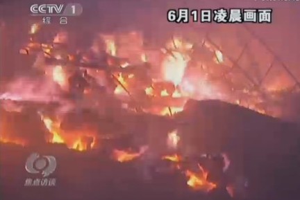 5月31日,中储粮库一个配电箱短路酿成连营大火,78个储粮囤表面过火,4万吨粮被烧,事发黑龙江省大庆市林甸县;