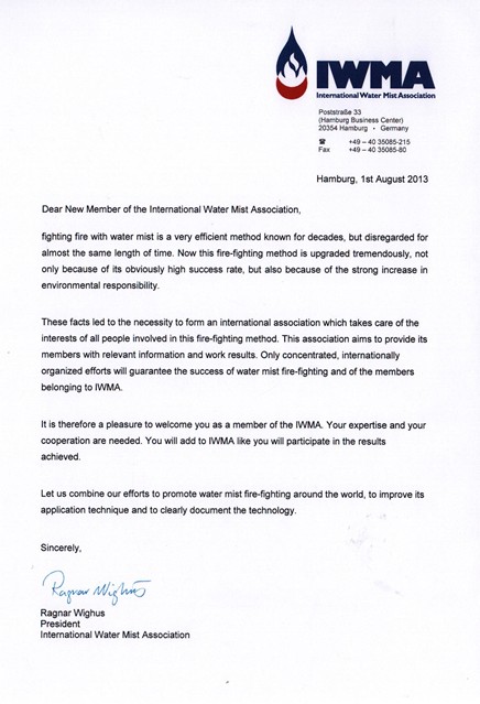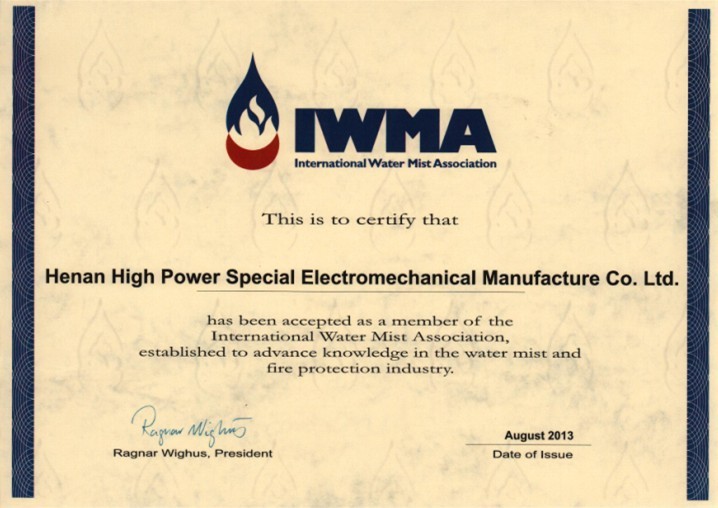 目前,经过国际细水雾协会常务理事会和主席Ragnar Wighus先生的审核和批准,河南海力特集团正式加入国际细水雾协会,成为协会的一员。据悉,海力特集团是首家以高压细水雾制造商身份加入协会的中国公司。