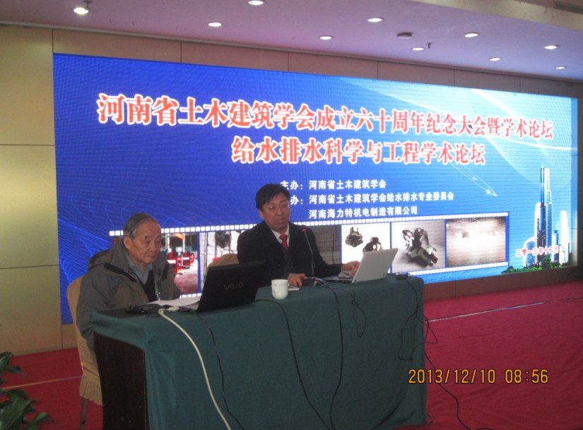2013年12月10日,由河南海力特机电制造有限公司承办的“河南省土木建筑学会成立六十周年纪念大会暨学术论坛、给水排水科学与工程技术论坛”在郑州市嵩阳饭店降重举行。参加此次论坛的不仅有郑州各设计院数百名给排水设计师,还有来自中机四院、中机十院等各大设计院资深专家,更重要的是,论坛还有幸邀请到中国给排水泰斗姜文源先生莅临大会指导。