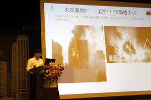 本次会议国内资深给排水行业专家和学者300余人共聚一堂,共同探讨交流。会上许总作了“高压细水雾灭火技术,高层建筑消防全方位解决方案”的主题发言,得到了资深给水排水行业专家的高度认可,获得了全场一致好评。传统的消防手段已经无法满足现代建筑尤其是超高层建筑所面临的消防问题,对于现代火灾所出现的火势蔓延快、烟囱效应、烟气毒气大等问题,必须依靠新的消防技术来解决。高压细水雾灭火技术在高效灭火的同时可以快速地降烟降温,隔绝热辐射,形成逃生通道,保护人员安全。